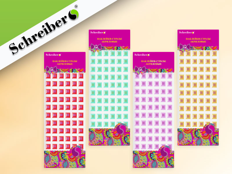 Наклейки-стразы акриловые КВАДРАТНЫЕ, 10х22 см., 10 видов в ассортименте., S 2087