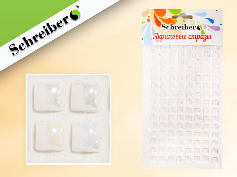 Наклейки-стразы акриловые КВАДРАТНЫЕ, только БЕЛЫЙ ПЕРЛАМУТРОВЫЙ цвет, S 8182
