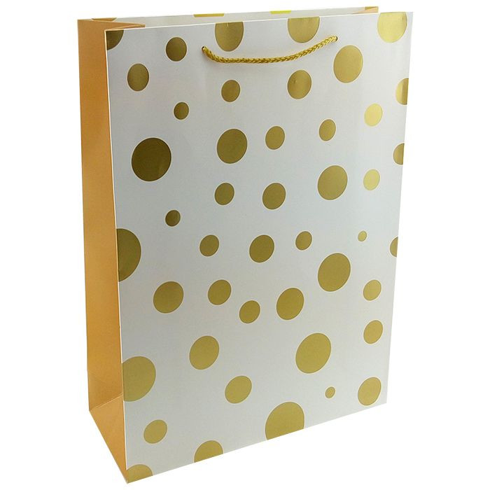 Пакет подарочный "Золотые круги на белом" Тиснение фольгой / 31*42*12см (Китай)