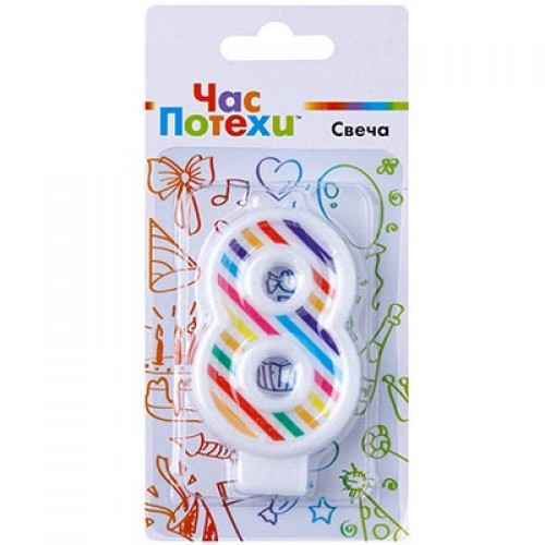 Свеча -цифра "8" Полосы разноцветные7смG