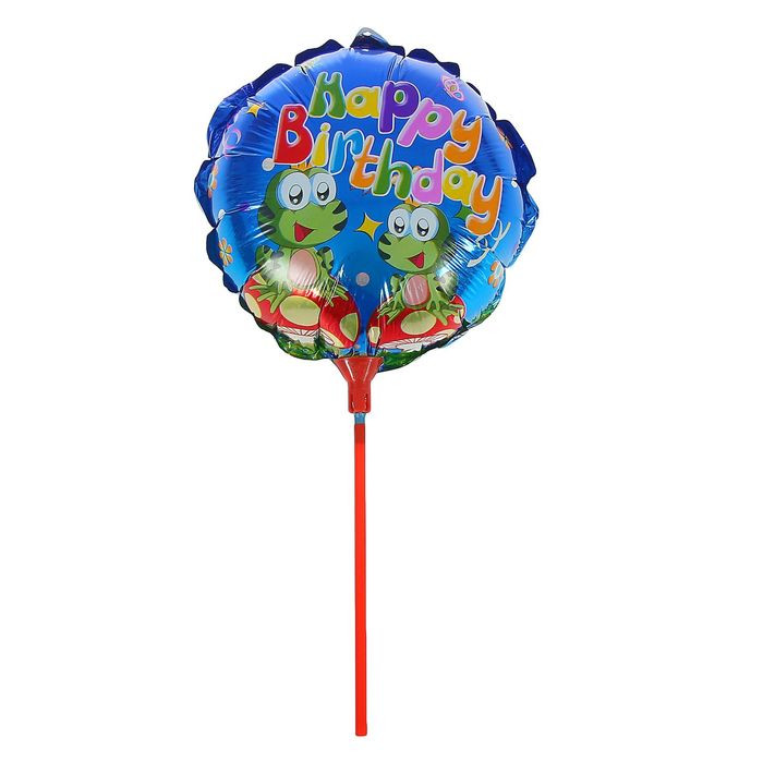 Шар Фольгированный "С Днем Рождения" Круг 10" "Глазастики" на палочке 1167109