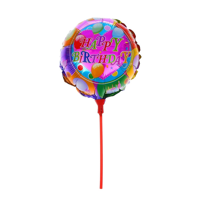 Шар Фольгированный "С Днем Рождения" Круг 10" "Шарики" на палочке 1167110