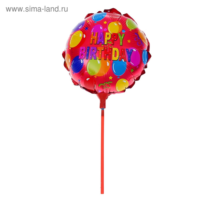 Шар Фольгированный "С Днем Рождения" Круг 10" "Шарики" на палочке 1167113