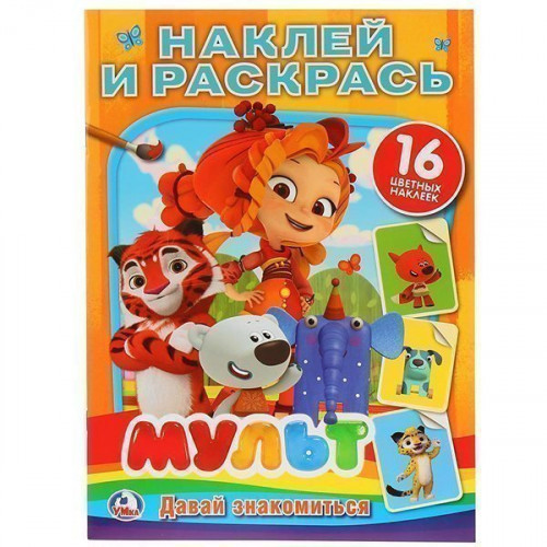 259111 "УМКА". МУЛЬТ. ДАВАЙ ЗНАКОМИТЬСЯ. МИКС (НАКЛЕЙ И РАСКРАСЬ). ФОРМАТ: 214Х290 ММ. 16 СТР. в к