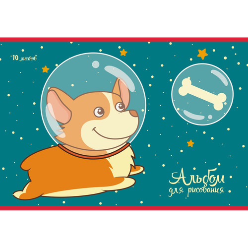 Альбом для рисования 10л. Скрепка. Пес-космонавт