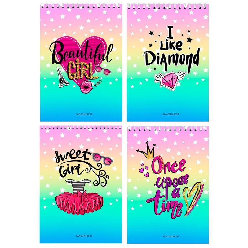 БЛОКНОТ А6 40л. на гребне ДЕВИЧИЙ СТИЛЬ (Б40-5880) ассорти, цвет.мелов.обл, офсет, клетка