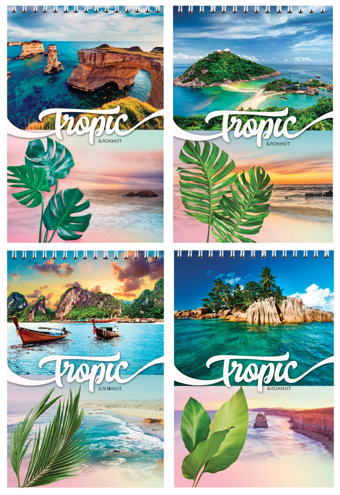БЛОКНОТ А6 40л. на гребне ТРОПИЧЕСКИЙ ОСТРОВ (Б40-5876) ассорти, цвет.мелов.обл, офсет, клетка