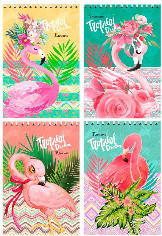 БЛОКНОТ А6 40л. на гребне ФЛАМИНГО И ЦВЕТЫ (Б40-5888) ассорти, цвет.мелов.обл,офсет, клетка