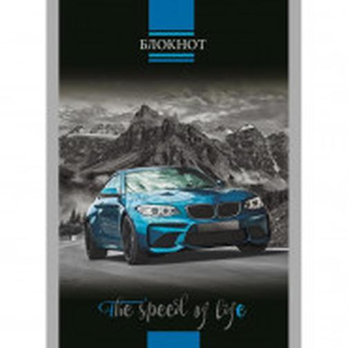Блокнот А6 кл. 32л. "Синий спорткар" обл. мел., скрепка