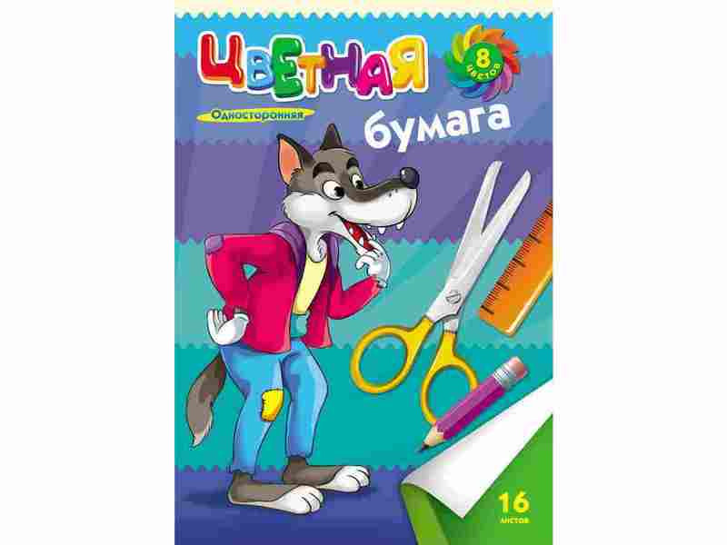 НАБОР ДЛЯ ДЕТ.ТВОР. Бумага цветная 16л односторонняя А4 СЕРЫЙ ВОЛК (16-9424) 16л.,8цв.