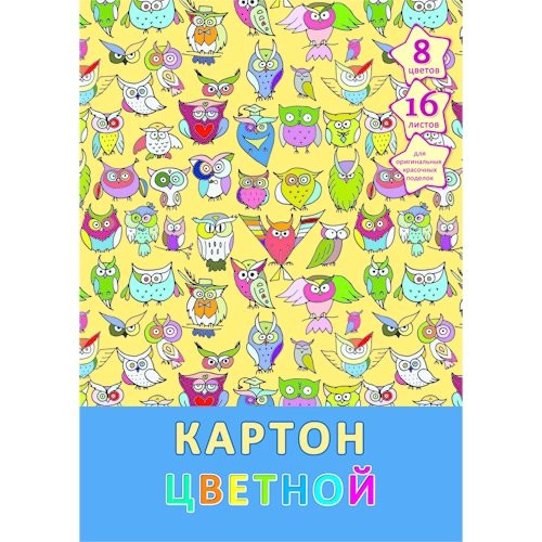 Купить Набор цветоного картона 16л.8цв. Формат 200х280 мм., Разноцветные совы в интернет-магазине kupi35.ru с доставкой. Набор цветоного картона 16л.8цв. Формат 200х280 мм., Разноцветные совы, артикул ЦК168353 КЭ: читать описание, характеристики, фото