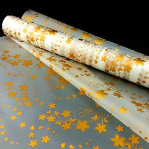Пленка упаковочная матовая прозрачная с рисунком "Цветочный узор" Золото / рулон 60 см*9 м 50 мкм