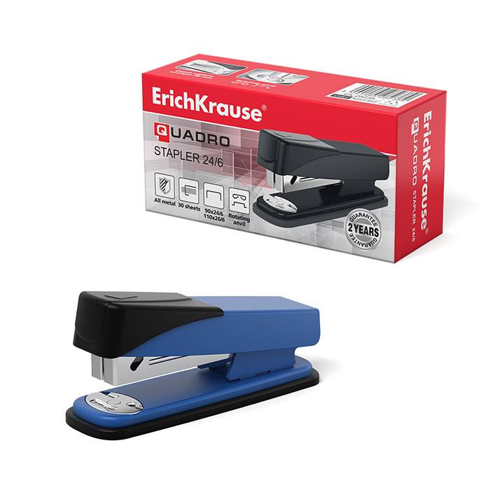 Купить Степлер ErichKrause QUADRO до 30 листов № 24/6; 26/6 металл ассорти в интернет-магазине kupi35.ru с доставкой. Степлер ErichKrause QUADRO до 30 листов № 24/6; 26/6 металл ассорти, артикул 28238 ФМ: читать описание, характеристики, фото