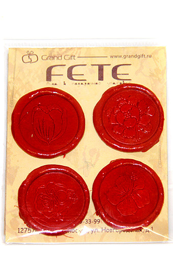 Сургуч 05/10-20 наб. из 4 печатей с рафией флористика красн. (d4см)