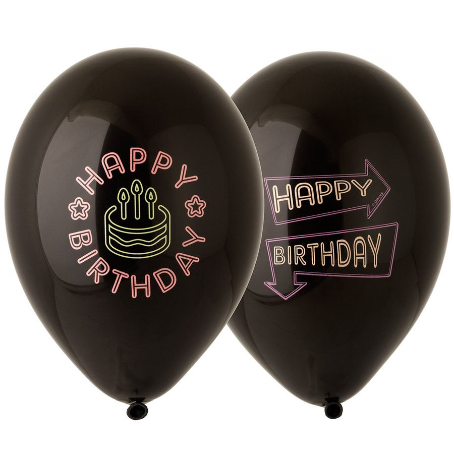 Воздушные шары из натурального латекса черного цвета типа пастель с 2-х цветным двусторонним рисунком в виде торта и надписи HAPPY BIRTHDAY. Предназначенны для использования в розничной продаже как в надутом, так и в не надутом виде, а также в оформлен...