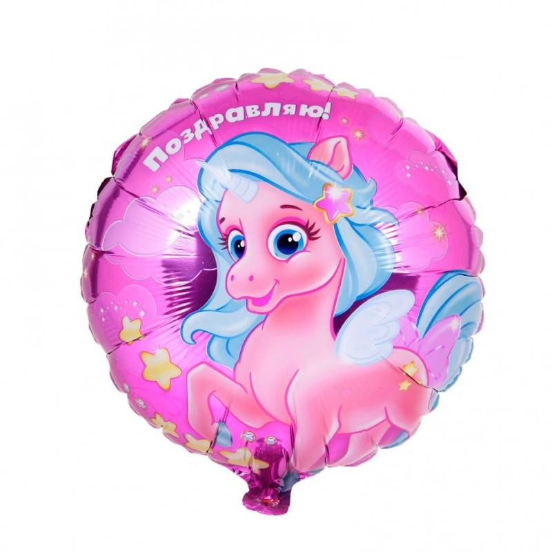 Шар фольгированный "Поздравляю" пони, круг 45см 1048257