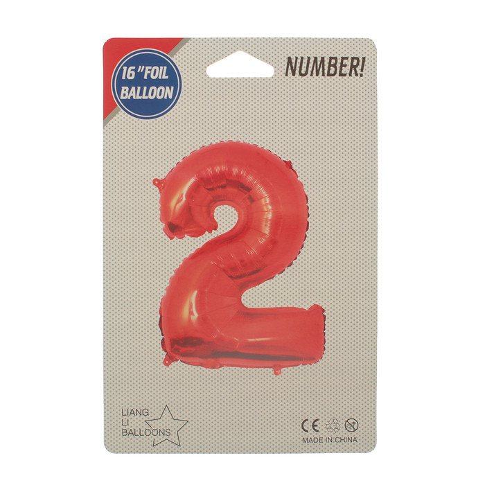 Шар фольгированный "Цифра 2", 16", цвет красный 2769560