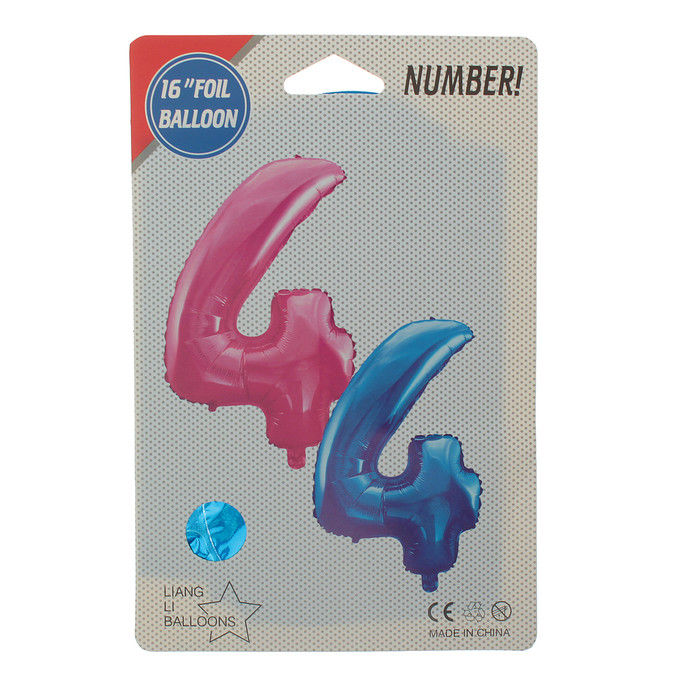 Шар фольгированный "Цифра 4, 16", цвет голубой 2769572