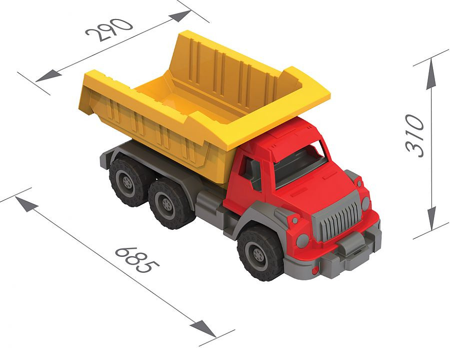 Самосвал "Аллигатор" - красивая, надежная машина на 6 колесах на металлических осях с вместительным кузовом. Без нее просто не обойтись на стройке! Устойчивые рельефные колеса и крепкий кузов позволяют выдержать достаточную нагрузку и перевезти игрушки или стройматериалы в пункт назначения. Кузов поднимается и опускается, колеса крутятся. Машинка знакомит ребенка с различными видами техники, их особенностями и принципом действия, развивают мелкую моторику, воображение. *безопасный прочный пластик, четкая деталировка, яркие цвета, надежное крепление подвижных деталей, вместительный кузов, размер 68,5*29*31 см
