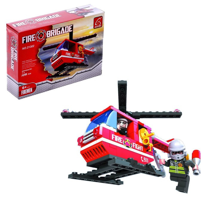 Конструктор Пожарная бригада «Вертолёт», 105 деталей