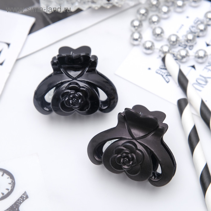 Краб для волос "Ночка" сердце цветок, 4 см, глянец и матовый, чёрный 3913203