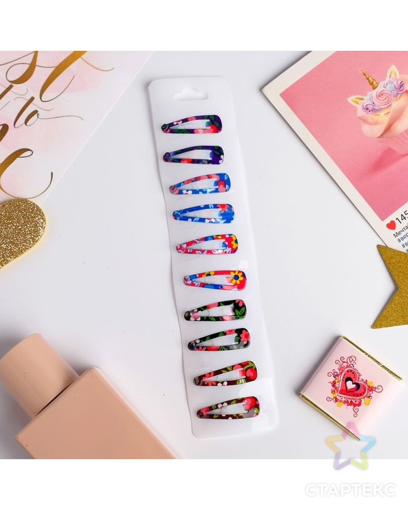 Невидимка для волос "Молли" (набор 10 шт) 2,7 см, ромашки и вишенки 4564208