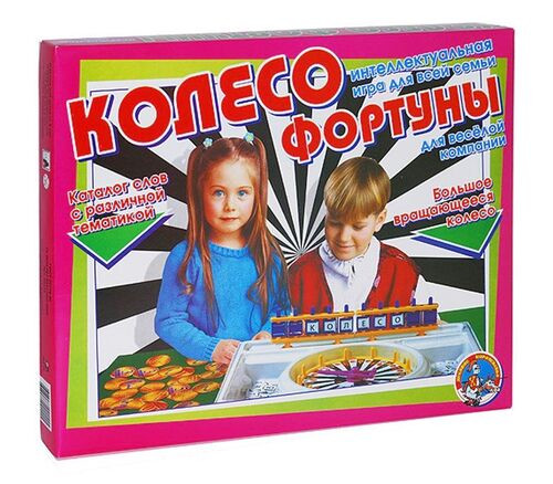 Это не просто игра, а настоящий праздник ума и фантазии для всей семьи! В настольную игру «Колесо фортуны» можно играть вдвоем с лучшим другом или целой веселой компанией дома или на даче, в детском саду или офисе, на Земле или других планетах, и можете не сомневаться, что удача всюду последует за Вами! Более 1000 умных слов в каталоге, 44 увлекательных тем на любой вкус, 2 варианта игры, барабан, табло, буквы – в общем, все для того, что бы Вам было весело и удобно! А тех, кто не умеет, игра с успехом научит читать, виртуозно выражать свои и угадывать чужие мысли. Игра рассчитана на игроков от 2 до 4 и предназначена для детей и их родителей в возрасте от 3 лет до 101 года. С правилами игры можно ознакомиться, кликнув на иконку «Правила», это позволит заранее понять на сколько она подходит для Вашего ребенка.