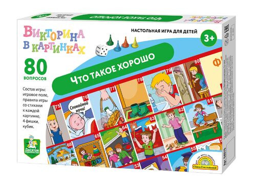 Купить Игра настольная ходилка Викторина в картинках "Что такое хорошо" арт.04019 в интернет-магазине kupi35.ru с доставкой. Игра настольная ходилка Викторина в картинках "Что такое хорошо" арт.04019, артикул 04019 39Ц: читать описание, характеристики, фото