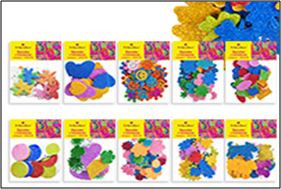Наклейки фигурные EVA с блёстками , в п/э пакете 12х10 см., 10 дизайнов в ассортименте