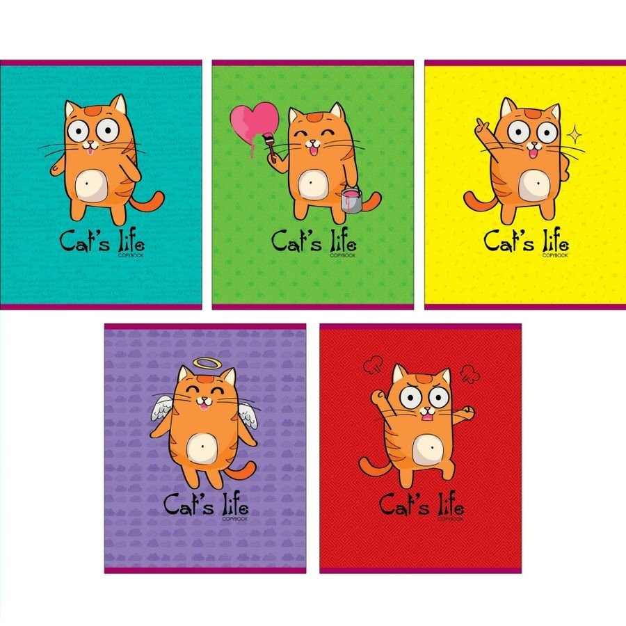 Тетрадь А5 48л. Скрепка. Клетка. Кошачья жизнь
