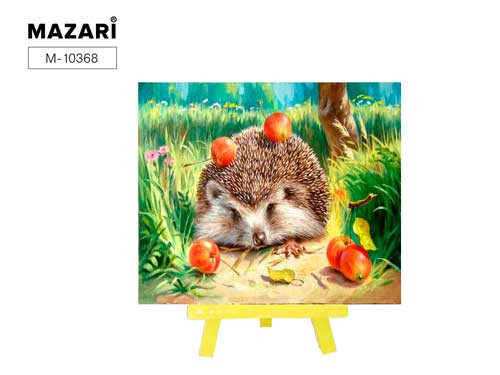 Алмазная мозаика с мольбертом ЁЖИК С ЯБЛОКАМИ,21х25 см, 1 дизайн, частичная выкладка, ОПП упаковка