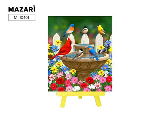 Алмазная мозаика с мольбертом ПТИЦЫ У ФОНТАНА,21х25 см, 1 дизайн, частичная выкладка, ОПП упаковка