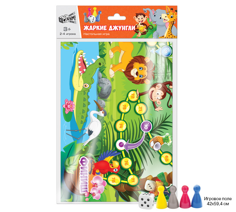 Бродилка "Жаркие Джунгли" А2 в пакете. Игра-ходилка - это игра, которая принесет массу положительных эмоций вашим детям. Настольные игры-ходилки - это отличная возможность весело провести время со своим ребенком. Учит считать и соблюдать очередность ходов, действовать по правилам, выигрывать и достойно проигрывать.