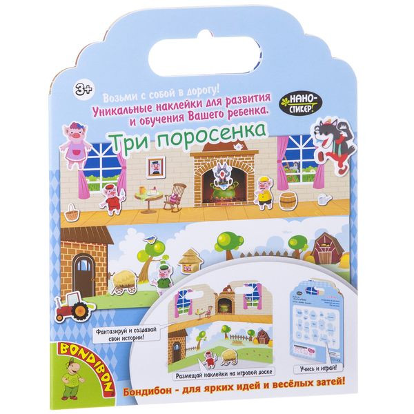 ВВ1579, Набор наклеек Нано-стикер Три поросенка, Bondibon, 19х24 см., арт. TP-S07