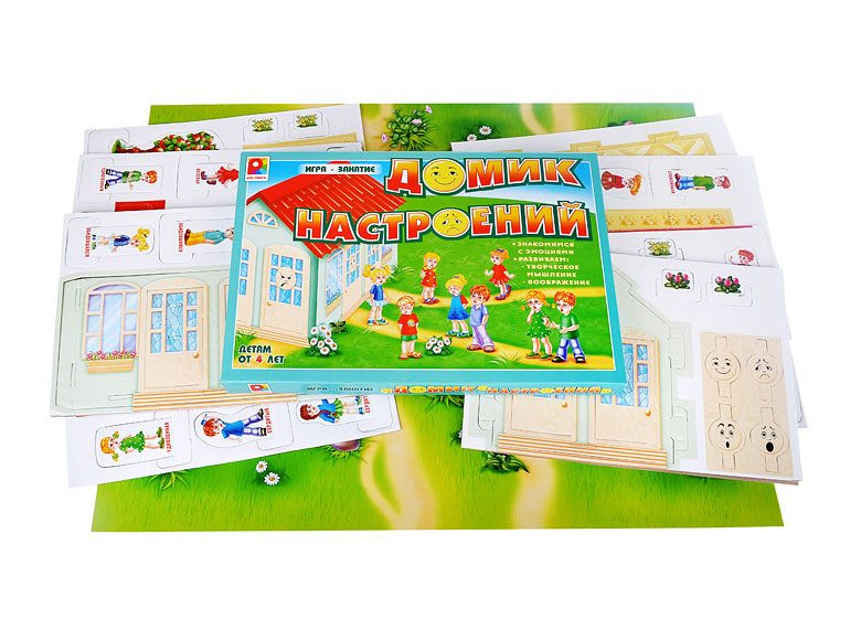 Развивающая настольная игра «Домик настроений» предлагает детям стать режиссёрами собственных эмоций, предварительно познакомившись с ними поближе. Дети узнают, как меняется настроение человека и что чувствует человек, который испытал те или иные эмоции. Сборный домик состоит из 8 комнат, каждая из которых принадлежит какой-либо эмоции. Игроки учатся моделировать своё поведение, двигаясь фишками-фигурками детей по полю, помещая их в сборный домик. Игра представлена красочно исполненным игровым полем, объёмными фигурками детей и деревьев на поставках и сборным домиком. Благодаря игре дети научаться справляться с эмоциями и контролировать своё поведение, а также поспособствует развитию творческого мышления и воображения. Возраст: 4+