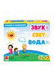 «Звук Свет Вода» - интересная дидактическая игра на классификацию явлений. Настольная игра представляет собой специальные картонные карточки, при помощи которых можно играть в оригинальное лото. В процессе игры, отгадывая загадки и подбирая нужные предметы, ребёнок познакомится с интересными явлениями природы, научится классифицировать предметы в группы, размышлять и обосновывать свой выбор. Кроме того, игра поспособствует развитию памяти, внимания, образного и ассоциативного мышления. Аксессуары изготовлены из плотного высококачественного картона. Все детали окрашены нетоксичными безопасными для здоровья детей красителями, которые долго время сохраняют свою яркость. Возраст: 5+