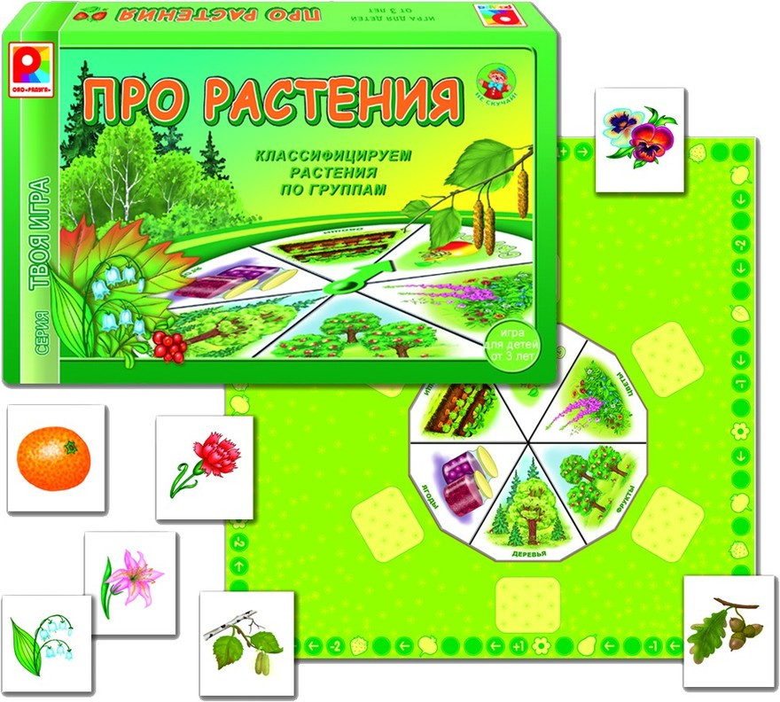 Многовариантная игра «Про растения» из серии «Твоя игра» познакомит детей с представителями растительного мира, научит их классифицировать. Игроков ждёт интересная игра с вращением стрелки на поле и выбором нужных карточек, передвижение фишек по большому полю и выполнение заданий. Игра предполагает 8 вариантов для тренировки памяти, воображения, логики и мелкой моторики детей. Выполняя интересные задания, дети научатся определять вид растения, группировать карточки по парам, находить между картинками различия, загадывать загадки, находить лишние предметы, а также повысят свою эрудицию и пополнят словарный запас названиями растений. Игра разработана для детей от 3-х лет с учётом особенности данной возрастной категории детей. Эта обучающая игра отлично подходит для подарка и увлекательного досуга всей семьи. Возраст: 3+