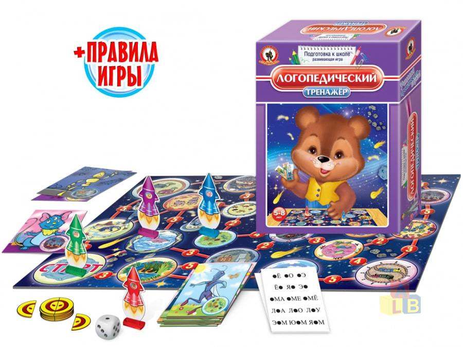 Настольная игра Русский стиль Тренажер " Логопедический" (3403). Эта забавная игра поможет ребенку научиться произносить проблемные звуки и исправить или предотвратить дефекты речи. Ребенок в роли капитана космического корабля будет 'летать' по игровому полю от одной планеты к другой и доставлять пассажиров - инопланетян. Чтобы получить плату за проезд, ему нужно будет научиться говорить на языке этих пришельцев, который составляют вполне наши русские поговорки и чистоговорки со сложными словами и звуками
