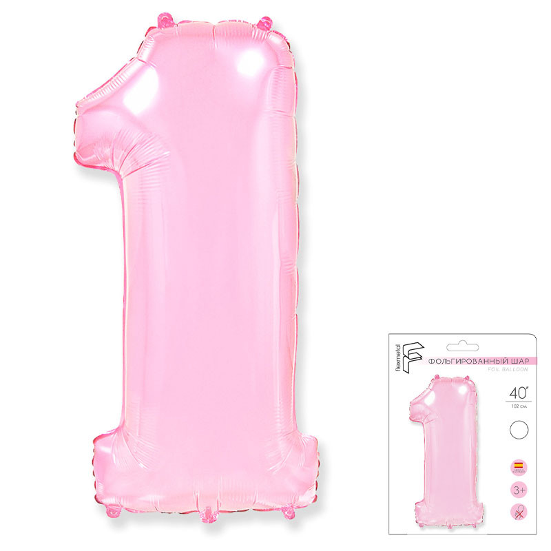 И 40 Цифра "1" розовый в упаковке / One / 1 шт /, Фольгированный шар (Испания)