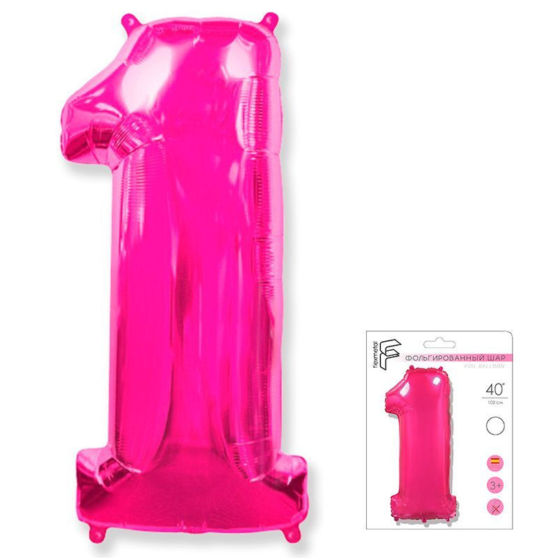 И 40 Цифра "1" фуксия в упаковке / One / 1 шт /, Фольгированный шар (Испания)