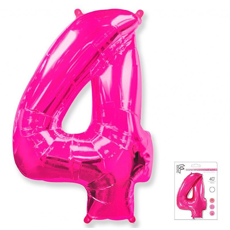 И 40 Цифра "4" фуксия в упаковке / Four / 1 шт /, Фольгированный шар (Испания)