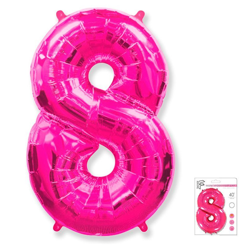 И 40 Цифра "8" фуксия в упаковке / Eight / 1 шт /, Фольгированный шар