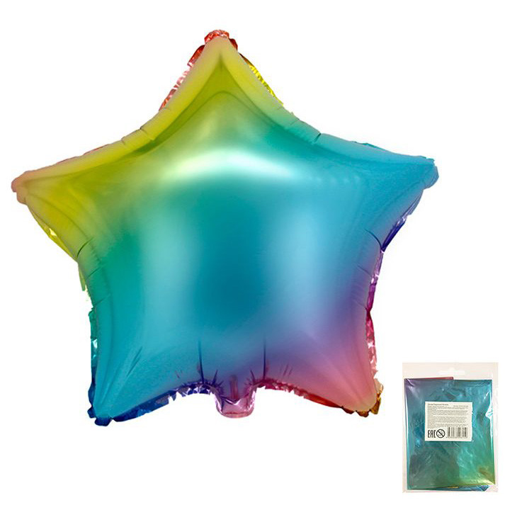 К 18 Звезда Радужный Пастель в упаковке / Star Yellow-Blue-Red Ombre / 1 шт /, Фольгированный шар (К