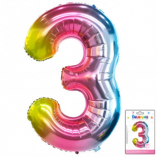К 40 Цифра 3 Радуга нежный градиент в упаковке / Three soft gradient / 1 шт /, Фольгированный шар (К