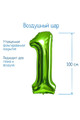 Шар фольгированный 40" Цифра 1, цвет салатовый, 1 шт 5256878