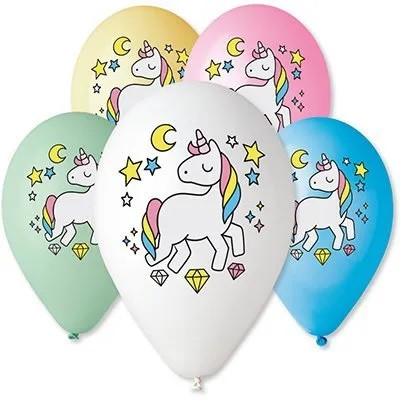 Шары воздушные с рисунком 12" Единорог 5цв /Ит 25шт