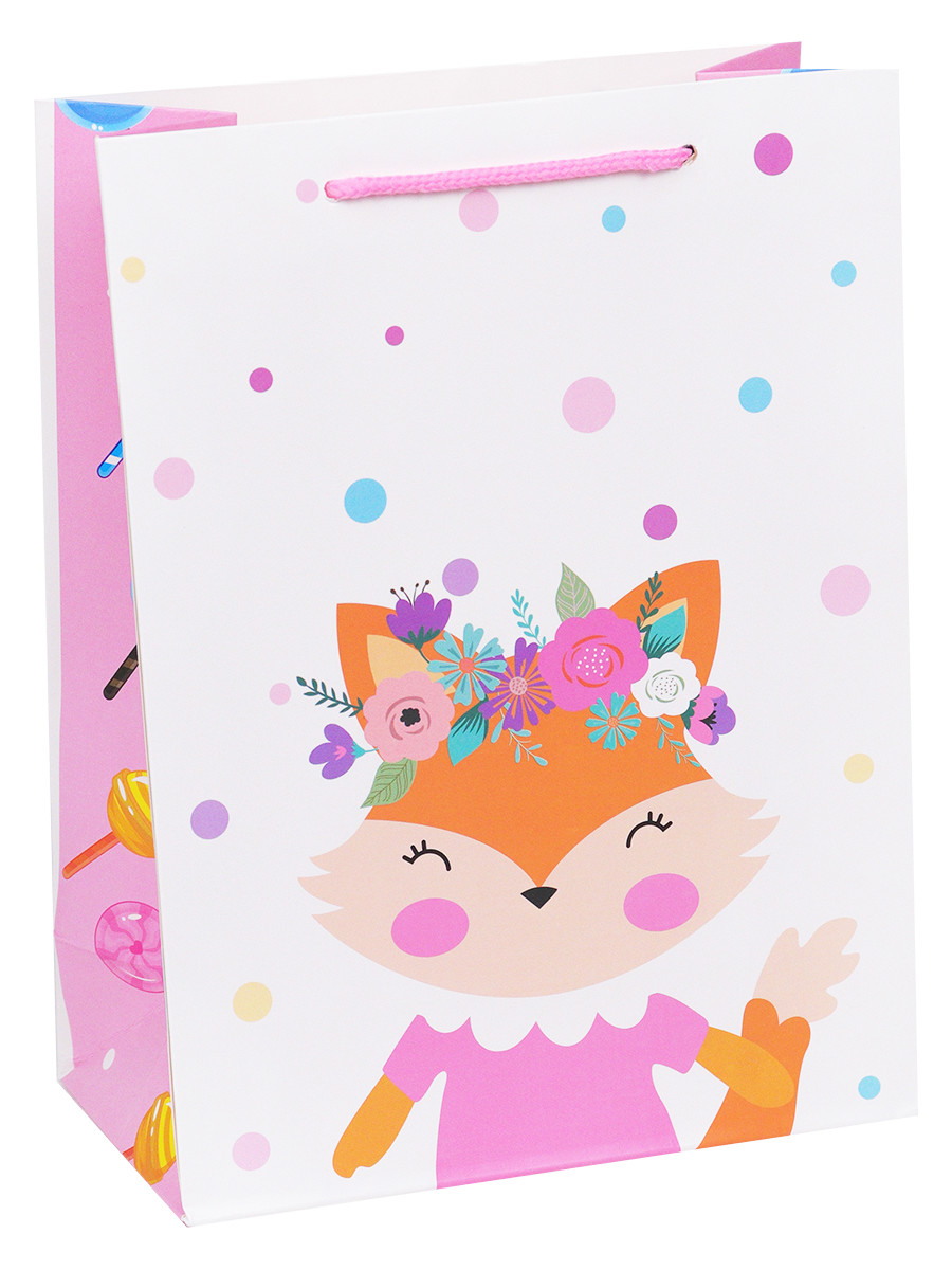 Dream cards Пакет подарочный с мат. лам. Лисичка, белый 26х32х12 см, 210 г ППК-1910