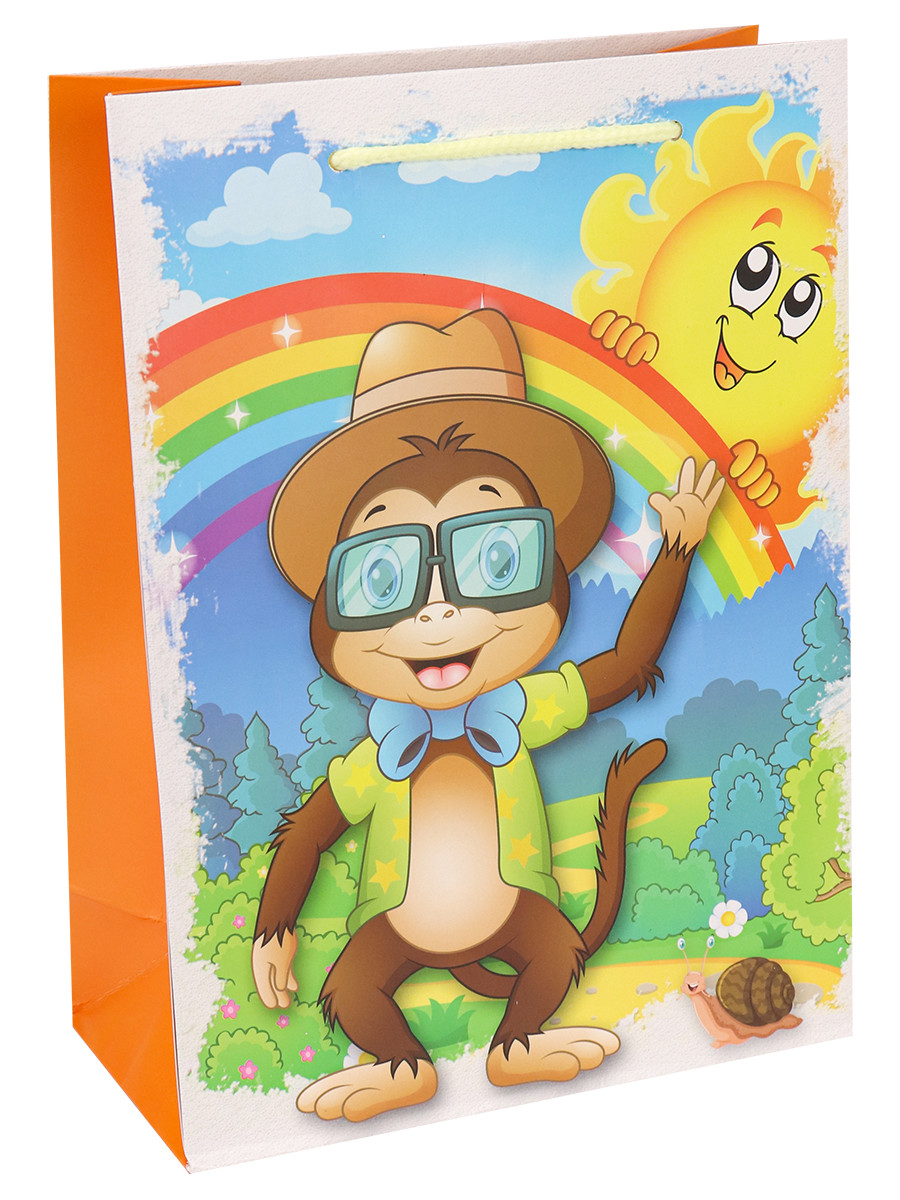 Dream cards Пакет подарочный с мат. лам. Приветливая обезьянка 18х24х8.5 см (M),210 г ПКП-3427