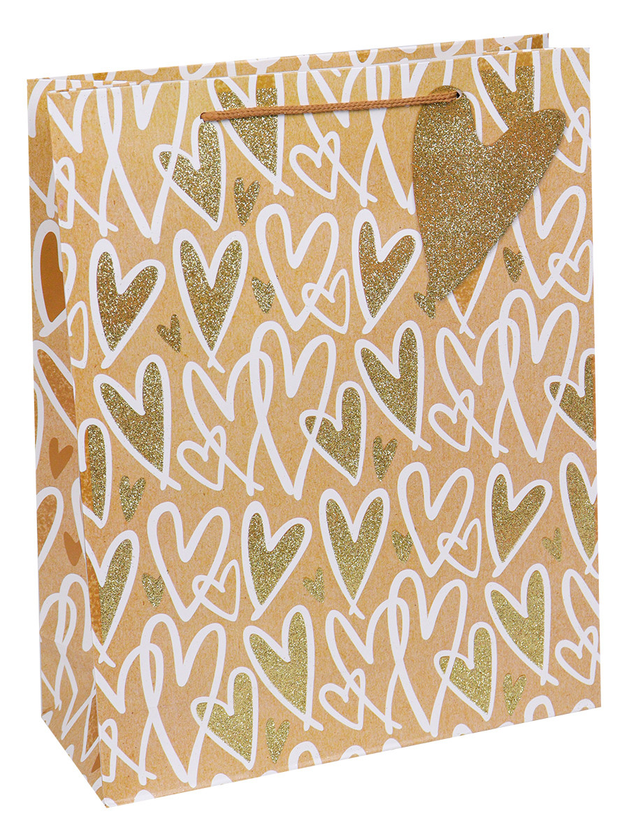 Dream cards Пакет подарочный с мат.лам. и глиттером Сердечки, жёлтые, 18х23х10 см, 210г ППК-1793