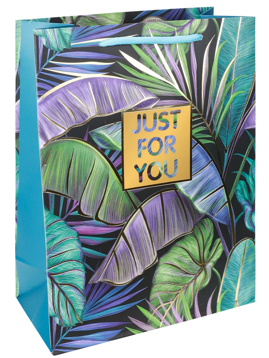 Dream cards Пакет подарочный с мат.лам. и тиснен.фольгой 18х23х10 см Тропический рай, синий, 210г ПП